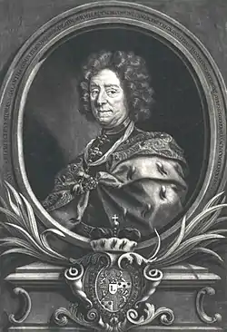 Paul I, 1st Prince Esterházy of Galántha[1][2][3] (German: Paul Fürst Esterházy von Galantha), (Hungarian: Pál, Esterházy galánthai herceg) (8 September 1635[1][3] – 26 March 1713) was the first Prince Esterházy of Galántha from 1687 to 1713, Palatine of the Kingdom of Hungary from 1681 to 1713, and an Imperial Field Marshal.[1] Paul was also an accomplished poet, harpsichordist, and composer.[4] He actively participated in various battles against the Ottoman Turks during the Fourth Austro-Turkish War (1663–1664) and the Great Turkish War (1683–1699). Paul is credited with establishing the wealth, power, and influence of the Princely House of Esterházy.[3]