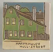 Glazed tile depicting the Edmund Hartt House on Hull Street, Boston, 1913.