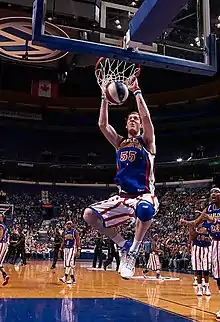 ![]() Sturgess playing with Harlem Globetrotters | |