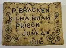 Bracken was imprisoned in Kilmainham Gaol following the Rising, and the National Museum of Ireland hold a prison biscuit he inscribed with his name and the date, 4 June 1916.[5]