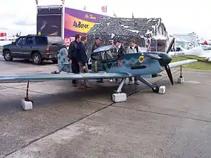 The Peak Aerospace Me 109R is a family of German replica warbird ultralight aircraft that was designed by Tassilo Bek, and originally produced by Peak Aerospace of Pasewalk. The company since changed its name to Classic Planes GmbH . The design, first flown in 1991, is an 80% scale replica of the Second World War Messerschmitt Bf 109 and is supplied as a kit for amateur construction or as a complete ready-to-fly-aircraft.[1][2]