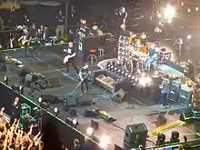 Midway through the first leg of arena shows, Pearl Jam headlined the New Orleans Jazz & Heritage Festival, playing for two hours and fifteen minutes, the longest set of the festival.[39] Again, the band paid tribute to Prince before playing their song "Even Flow", a track Prince had covered live on his Live Out Loud Tour in 2013.[40][41] They finished their set at the festival with a cover of Neil Young's song "Rockin' in the Free World" and were joined onstage with Josh Klinghoffer and Chad Smith of the Red Hot Chili Peppers and Nathan Followill of Kings of Leon.[42][43]