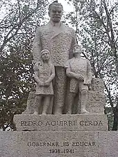 Pedro Abelino Aguirre Cerda (Latin American Spanish: [ˈpeðɾo aˈɣire ˈseɾða]; February 6, 1879 – November 25, 1941) was a Chilean political figure, educator, and lawyer who served as the 22nd president of Chile from 1938 until his death in 1941. A member of the Radical Party since 1906, he was chosen by the left-wing Popular Front coalition as its candidate for the 1938 presidential election and won. He had previously served as deputy for San Felipe, Putaendo and Los Andes from 1915 to 1918, Minister of the Interior from January to September 1918 under president Juan Luis Sanfuentes, deputy for Santiago from 1918 to 1921, Minister of Justice and Public Instruction from 1920 to 1921 under president Arturo Alessandri, and senator for Concepción from 1921 to 1927. He died two years and eleven months into his presidency on November 25, 1941, at the age of 62, from tuberculosis.