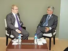 ![]() Former Foreign Minister Pedro Vaz (right) meeting with Estonian Foreign Minister Urmas Paet. | |