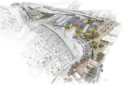 Aerial view of artist's rendering of the finished San Ysidro Land Port of Entry in 2015.