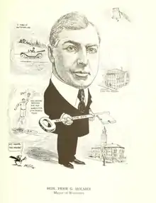 Caricature of Holmes from 1917, when he was the Mayor of Worcester, Massachusetts.
