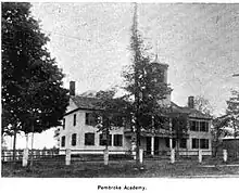 Pembroke Academy was incorporated on June 25, 1818, as a private school, and on May 25, 1819, the first building was dedicated. The academy opened with 48 students on May 26, 1819, and the first headmaster was Reverend Amos Burnham.[1] In its early years Pembroke Academy prepared many students for attendance at Dartmouth College.[2]
