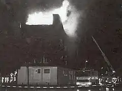 Fire broke out in the early morning of 16 September on the first floor.[1] The fire, which was started by an occupant,[2] swiftly crept throughout the building. People were jumping from the windows and from the roof by the time the fire department arrived. Then, while the rescue operations were underway, part of the attic collapsed and the stairwell was soon ablaze. An outside cage ladder was the only safe way out for those still trapped inside, but its existence was unknown to the occupants.