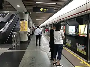 People's Square (simplified Chinese: 人民广场; traditional Chinese: 人民廣場; pinyin: Rénmín Guǎngchǎng) is a large interchange station of the Shanghai Metro, located below People's Square, also next to People's Park and Nanjing Road, in the city center of Shanghai.[6] The station is one of the busiest metro stations in mainland China, handling a daily traffic of over 700,000 passengers.[7]