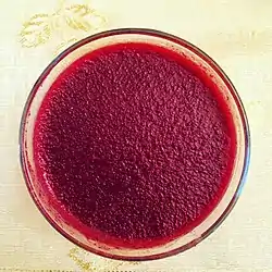 Pepeçura is a sort of pudding in the Turkish cuisine, especially of the eastern Black Sea Region, made of grape must mixed with flour and boiled until thick. It may also include almonds, walnuts, and other nuts.