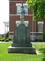In 1825, it was decided that a more permanent building was needed to house the county court and administration, so a contract was let for the first courthouse. Funding of the $1,486.25 (1825 dollars) project came from the sale of 55 lots of property deeded to the county by Bernard Layton. No known illustrations of the structure exist. By 1859, a growing county created a need for more space. The court appropriated $8,000 (1859 dollars) for construction and appointed John E. Layton as superintendent of the construction.[5] The two-story building was completed in 1861. The site of the building was on the northeast corner of the square. The building continued in use until after the turn of the century. Grand jury reports from that time indicated the condition of the building was beyond repair. After county residents presented a petition calling for an election on September 1, 1903, voters approved a proposition for a $30,000 bond issue to finance a new courthouse. From several plans submitted in November, the court selected the proposal of Caldwell and Drake, Columbus, Indiana, who were then contracted for construction. Construction began in February, 1904. The cornerstone ceremonies were conducted on June 4, 1904. The total cost on the red brick, 65-by-92-foot building was $31,819. The county continues to use the courthouse for county court and administration purposes.[2][6][7] The building was listed on the National Register of Historic Places in 2016.[1]