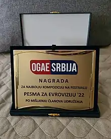 Following the event, the fan organisation OGAE Serbia voted on the best song at Pesma za Evroviziju '22 as decided by association members. The award was won by the winning song "In corpore sano" with 256 points. Second place, with 233 points, came from the song "Muškarčina" by Sara Jo, while third place went to Zorja and her song "Zorja" with 143 points. Sara Jo was also the winner of the OGAE Second Chance, which was awarded after a round of voting with all entries, not including the winning song of the event.[27]