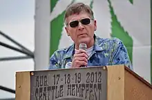 Holmes addressing the crowd from the main stage of the 2012 Seattle Hempfest