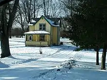 - Farm House - The house is a frame construction. It has two stories in a rectangle. The material was purchased from Sears & Roebuck through their catalogue. Built between 1908 and 1910 it features intersecting gable roof with a front porch. The Lap siding is still original (2010). The foundation is concrete block.[2]