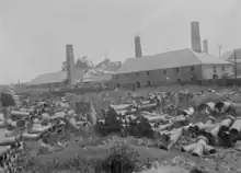 Ceramic pipes outside the McSkimming brickworks at Benhar in 1926