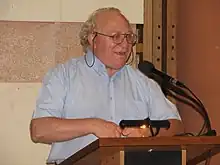 Serracino Inglott speaking at Researchers' Night 2007, at Saint James Cavalier, Malta