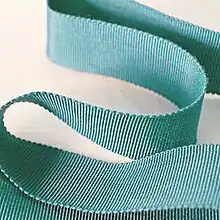 Petersham is very similar to grosgrain ribbon in appearance: both have closely spaced horizontal ridges, but Petersham has a flexible picot edge allowing it to be shaped with an iron, whereas grosgrain cannot be shaped this way.[3]