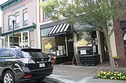 The Petoskey Downtown Historic District consists of 102 commercial properties and two institutional structures, located along 10 blocks in Petoskey's business district, primarily along East Mitchell and Howard streets. The contributing structures range in date from 1879 to the 1920s. The old tracks from the Grand Rapids and Indiana Railroad run diagonally through the district, and open land bordering the track is landscaped as a park. At its north end, the district includes the old Grand Rapids and Indiana Railroad Depot and the Perry Hotel, both reminders of the early tourism history of the city.[2]