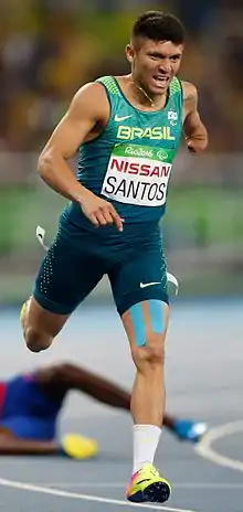 Petrúcio Ferreira dos Santos (born 18 November 1996) is a Paralympic sprinter from Brazil. He competed in three events at the 2016 Summer Paralympics and won a gold or a silver medal in each of them. In the individual 100 m sprint he broke the world record both in the preliminaries and in the final.[1]