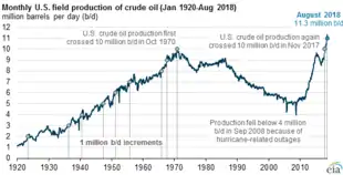 - ↑ "U.S. Field Production of Crude Oil (Thousand Barrels per Day)". www.eia.gov. Retrieved September 22, 2019.