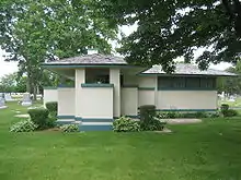 Pettit Memorial Chapel or Pettit Chapel was designed by architect Frank Lloyd Wright and constructed in 1907. The Pettit Chapel is located in the Belvidere Cemetery in Belvidere, Illinois, United States, which is in Boone County. The cemetery was chartered in 1837 and contains 13,000 known graves.[1] The chapel was listed on the U.S. National Register of Historic Places December 1, 1978.[3] The Pettit Chapel is an example of Frank Lloyd Wright's famed Prairie Style. It is the only funerary structure designed by Wright to be built in his lifetime.