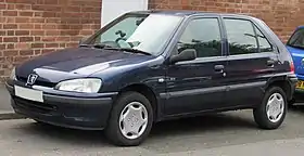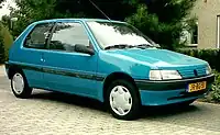 The Peugeot 106 is a supermini produced by French automaker Peugeot between 1991 and 2003. Launched in September 1991, it was Peugeot's entry level offering throughout its production life, and was initially sold only as a three-door hatchback, with a five-door hatchback joining the range in the beginning of 1992. Production ended in July 2003.