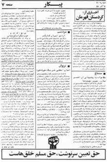 Peykar (Persian: پیکار, lit.'Struggle') was a weekly newspaper in Iran that was published as the official organ of the communist organization Organization of Struggle for the Emancipation of the Working Class.
