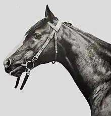 The stallion was described in Le Sport universel illustré of 23 March 1901 as a "handsome horse" with a golden chestnut coat, two barnacles on the hind legs and a broad head list, and measuring 1.61 m at the withers.[10] His morphology was reminiscent of a saddle horse, with long lines and short loins.[10] His hips were relatively round, and his chest and neck were said to be perfect. The head attachment was reminiscent of the Thoroughbred.[10] His tissues were particularly fine. Its legs were devoid of dewlap.[14]