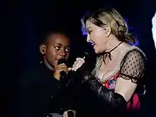 Her efforts were also overshadowed when she and her then husband Guy Ritchie adopted infant David Banda in 2006, with many accusing her of violating Malawian laws.[181] It sparked conversations about international adoptions by celebrities,[182] and drew a "significant amount of media and public attention".[183] As a result of the "highly publicized" process, The Guardian dubbed Banda "the most famous baby in the world" in an article published in 2006.[181] Some Madonna critics speculated that she adopted the infant as a publicity stunt amid the Confessions Tour.[184] She later adopted more children, one in 2009, and two in 2017,[143] and Madonna recalls about her process with David Banda: "Every newspaper said I kidnapped him [...] In my mind, I was thinking 'Wait a minute. I'm trying to save somebody's life [...] I did everything by the book. That was a real low point for me. I would cry myself to sleep".[181]
