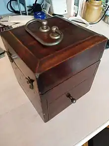 A portable Faradic Battery by Philip Harris & Co. from 1913