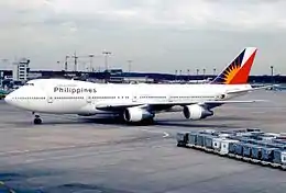 Philippine Airlines Flight 434, sometimes referred to as PAL434 or PR434, was a flight on December 11, 1994, from Cebu to Tokyo on a Boeing 747-283B that was seriously damaged by a bomb, killing one passenger and damaging vital control systems, although the plane was in a repairable state.[1] The bombing was a test run of the unsuccessful Bojinka terrorist attacks. The Boeing 747 (tail number EI-BWF) was flying the second leg of a route from Ninoy Aquino International Airport (formerly Manila International Airport or NAIA), Pasay in the Philippines, to Narita International Airport, in Tokyo, Japan, with a stop at Mactan–Cebu International Airport, Cebu, in the Philippines. After the bomb detonated, 58-year-old veteran pilot Captain Eduardo "Ed" Reyes was able to land the aircraft, saving it and the remaining passengers and crew.[2]