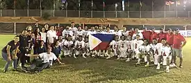 The Philippines has yet to be admitted as a member of the Asia-Pacific Lacrosse Union as of 2018, meaning they were unable to participate in the 2015 and 2017 ASPAC games.[10] In mid-July 2017, The Philippine national team appointed Carthage Senior High School coach Kirk Ventiquattro as their head coach for the 2018 World Lacrosse Championship.[11] The American coach accepted the post agreeing with the national team management that the position would not affect his other duty as Carthage's varsity lacrosse coach.[12] They made their official debut in the 2018 edition of the World Lacrosse Championship and played in the main tournament.[9] They were made part of the Grey Division along with the Czech Republic and Belgium.[10]They finished the top of their division. Overall they finished 10th losing only to host Israel and Germany in the later stages.[13]