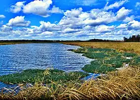 As part of a floodplain of the Savannah River, the area known as Phinizy Swamp is a 7,000-acre (2,800 ha) natural wetland created by the confluence of Butler Creek and the Savannah River. The swamp derives its name from Victor Francois Phinizy and his family, who owned a homestead on the land, first settling in 1778.[2] During the 19th and 20th centuries, the wetlands were converted to farm fields and cattle pastures, and in the 1950s and 60s they were part of a beef farm for the Gracewood state-run mental health institution. In 1973, the city of Augusta acquired the land, but it remained unused until 1993, when the city was ordered to update its wastewater treatment system. The city decided to restore the site to a wetlands ecosystem and use it as a tertiary treatment stage for water from the nearby wastewater treatment plant. As part of the construction of the wetlands, the city also established the Southeastern Natural Sciences Academy, which later became the Phinizy Center for Water Sciences.[2]