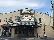 Piedmont Theatrer was opened on 15 September 1917 by musician Dave Rosebrook as a single-screen theater with a Wurlitzer organ.[1][2] In 1934, it underwent a major Art Deco remodeling by Alexander A. Cantin, during which the balcony was added.[2] The Piedmont Theatre now focuses on independent and foreign cinema.[3] As with the nearby Grand Lake Theatre, its balcony has been converted into two smaller theaters, bringing the total number of screens to three.[1] It underwent further remodeling in 2011.[1]