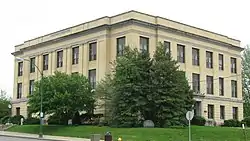 The Pike County Courthouse is a historic courthouse located at 801 Main St. in Petersburg, Pike County, Indiana. It was designed by architects Elmer E. Dunlap and of Jasper N. Good and built in 1922. It is a three-story, Neoclassical style, nearly square, concrete and buff brick building with slightly projecting pavilions on three sides. It measures 114 feet by 109 feet. Also on the property are five contributing objects: a GAR memorial, veterans' memorial, and three metal street lamps.[2]