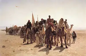 Pilgrims going to Mecca (French: Pèlerins allant à La Mecque) is a painting by Léon Belly. It is a very large (160 cm x 242 cm) oil on canvas work. It won a first class medal at the Salon of 1861, was bought by the state from the artist, and originally displayed at the Musée du Luxembourg. Since 1983 it has been part of the collection at the Musée d'Orsay, in Paris. From the time it was first exhibited it has been considered a masterpiece of orientalist painting.[1]