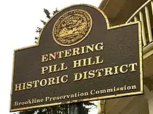 The Pill Hill Historic District is a historic district roughly bounded by Boylston Street, Pond Ave., and Acron, Oakland and Highland Roads in Brookline, Massachusetts.