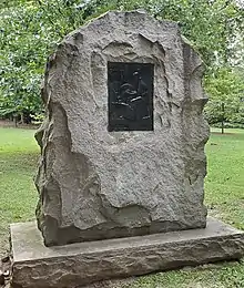 The memorial was erected in 1938 to honor group members between 1847 and 1869.[1] Steffen Thomas designed the monument.[1][2] The memorial consists of a large granite boulder affixed with bronze plaques. The plaque on one side shows a woman working at a spinning wheel.[2] The memorial is located just north of the park's 14th Street entrance.[3]