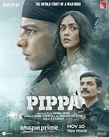 Pippa is a 2023 Indian Hindi-language biographical war film based on the life of Captain Balram Singh Mehta of India's 45 Cavalry regiment who, along with his siblings, fought on the eastern front during the Indo-Pakistani War of 1971. Named after the Russian amphibious war tank PT-76, which floats on water like an empty ‘pippa’ (tin) of ghee, the film traces Mehta's coming-of-age as he steps up to prove himself in Bangladesh Liberation War. It is an adaptation of real life events during the Battle of Garibpur in 1971, and is directed by Raja Krishna Menon. The film was produced by RSVP Movies and Roy Kapur Films, with Ronnie Screwvala and Siddharth Roy Kapur as producers.[2] It stars Ishaan Khatter, Mrunal Thakur and Priyanshu Painyuli in lead roles.[3] The film is an adaptation of Brigadier Balram Singh Mehta's war memoir, 'The Burning Chaffees'.[4]
