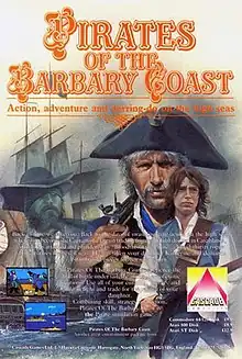 Pirates of the Barbary Coast is a maritime trading and strategy video game set in the days of the Barbary corsairs, published in 1986 for Atari 8-bit, Atari ST, and Commodore 64 by StarSoft Development Laboratories.[1] In 1987, it was also published by Keypunch Software for DOS, while Cascade Games published versions for the other platforms in Europe.