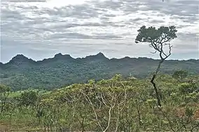 The Pireneus State Park is classed as IUCN protected area category II (national park).[1] The objectives are preservation of natural ecosystems of great ecological relevance and scenic beauty while enabling scientific research, education, environmental interpretation, recreation in contact with nature and ecological tourism. The park preserves the flora, fauna and water sources.[1] Average annual rainfall is 1,500 millimetres (59 in). Average daily temperatures range from 19 to 33 °C (66 to 91 °F) and average 22 °C (72 °F). The park is in the cerrado biome.[1] The park holds cerrado rupestre vegetation, which grows on rocks and includes endemic species of cacti, orchids and bromeliads. There are also forests, grasslands and other types of cerrado vegetation.[3]