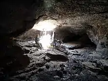 The mountain contains a large number of lava tubes, which are frequented by cavers. The most well known cave is the 1,300-foot (400 m)-long SPJ Cave.[8]