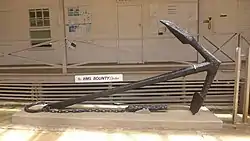 The hammer and anvil from HMS Bounty are held in the collection of the Mariners' Museum and Park in Virginia.[2] Examples of tapa cloth are held in the British Museum and at Kew Gardens, in particular those made by original settlers Mauatua and Teraura.[12] The remains of the Bounty rudder are held in the Fiji Museum.[13]