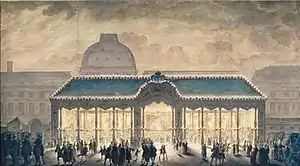 A construction in the Place du Carrousel at the time, in 1745, of the marriage of Louis, Dauphin of France. Note the Tuileries Palace in the background.