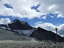 The Platigliole Glacier lay near the Platigliole Pass, a mountain pass of 2,908 metres (9,541 ft) elevation above sea level in the Stelvio National Park in Northern Italy. Platigliole lies in the Province of Sondrio, Lombardy, close to the border with Trentino-Alto Adige/Südtirol.[1][2] It lies close to the modern border with Switzerland on the north-west face of a peak with altitude of 3,271 metres (10,732 ft).[3] Historically, until the 1919 Treaty of Saint-Germain-en-Laye, the glacier marked the boundary between the Kingdom of Italy and the Austro-Hungarian Empire. Because of its political situation it was little-studied compared to other Alpine glaciers.[2]