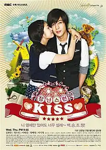 Playful Kiss (Korean: 장난스런 키스; RR: Jangnanseureon Kiseu; (also known as Mischievous Kiss or Naughty Kiss) is a 2010 South Korean romantic-comedy television series, starring Jung So-min and Kim Hyun-joong.[1][2][3] It aired on MBC from September 1 to October 21, 2010, on Wednesdays and Thursdays at 21:55 for 16 episodes.