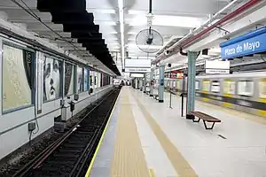 Plaza de Mayo is a station on Line A of the Buenos Aires Underground.[1] This station belonged to the first section of line opened on 1 December 1913, linking the station with the station of Plaza Miserere.[2]