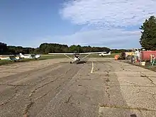 In 2000 the airport was briefly closed after SPNEA declined to renew Hordon's lease citing concern for the safety of a historic structure on the property.[3] Hordon prevented use of the airport runway by future lease holders by erecting a 27-foot tall barrier on the portion of the runway on his property adjacent to the airport, eventually failing in attempts to prove ownership of the property.[4][5][6]