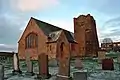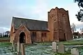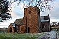 The church is unusually modern for an older village, the sandstone date block reads 1907. It comes under the Christ Church parish in Penrith.[6] The church is set in a square wall with surrounding graveyard. Its stained glass windows were designed by Morris & Co.[7]