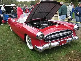 The Plymouth Belmont was a 1954 concept sports car built by Plymouth. It (and the 1954 DeSoto Adventurer concept car) were the first plastic-bodied cars by the Chrysler Corporation. The Belmont seated two and used a V8 engine, that produced up to 150 hp (112 kW).[1] It was originally painted in a light blue metallic, it was painted red later. It was 191.5" long.[2] Had it ever become a production model, its main competitors would have been the Chevrolet Corvette and the Ford Thunderbird.